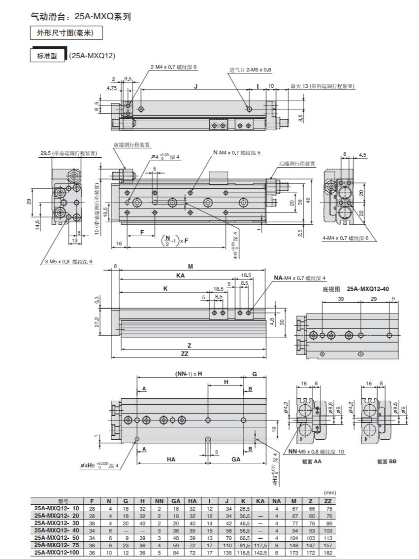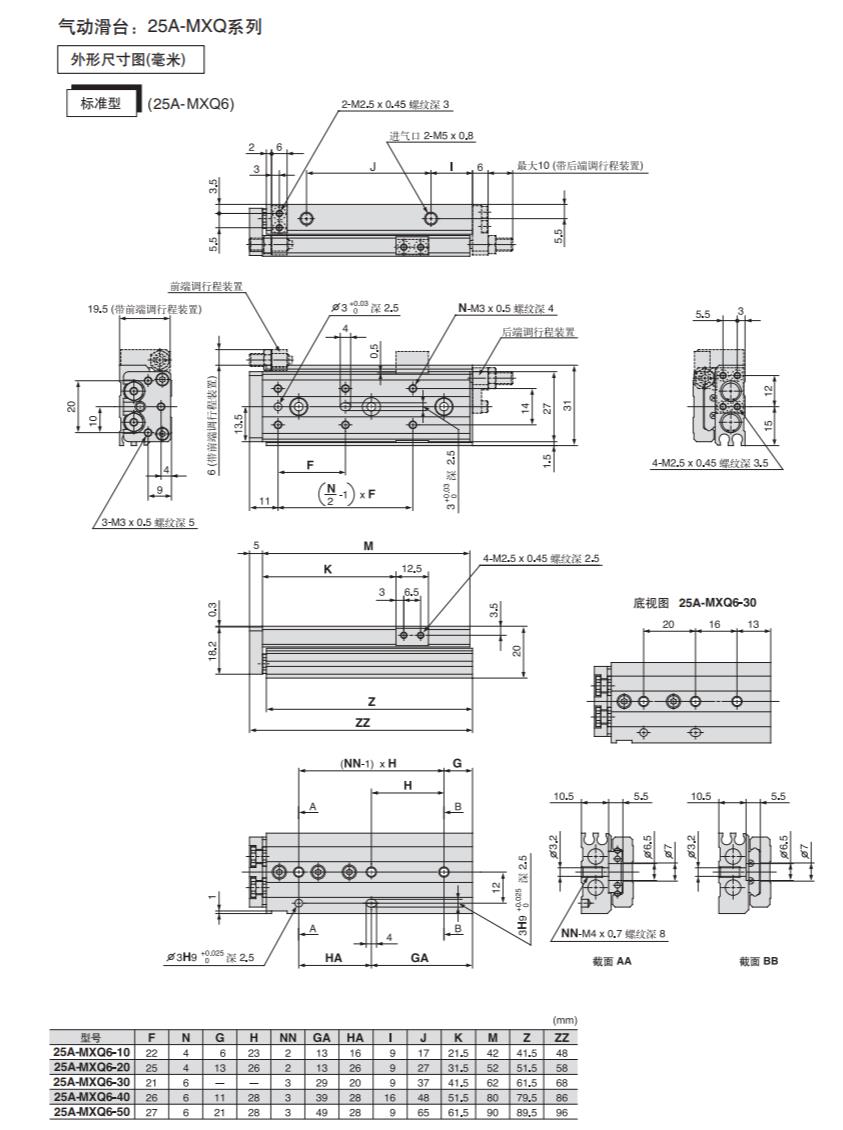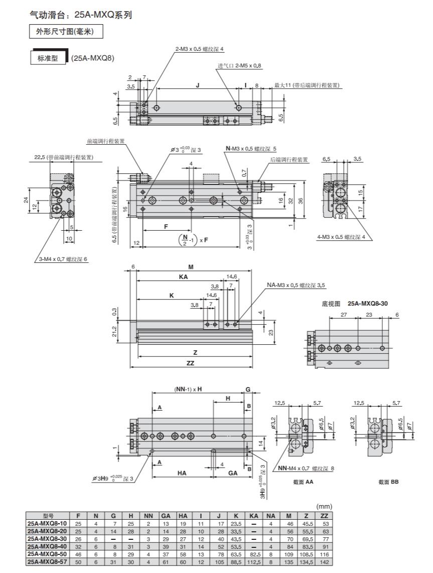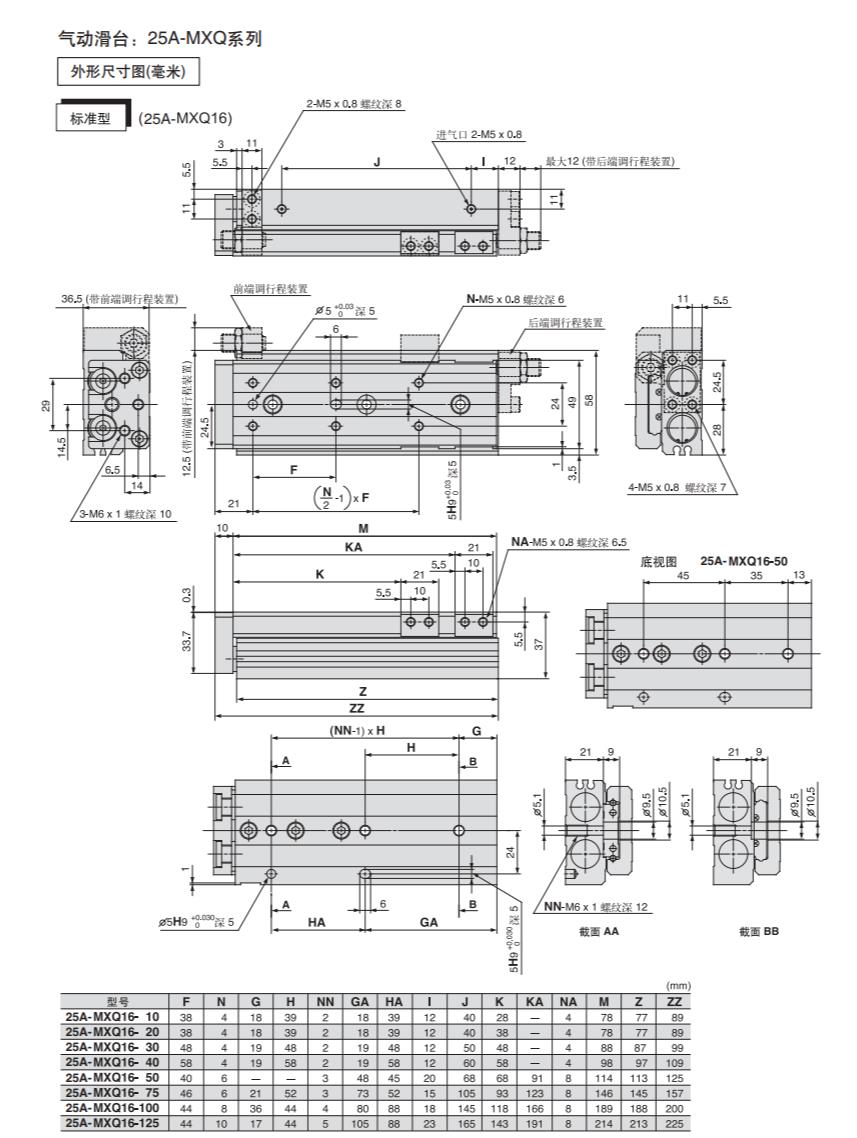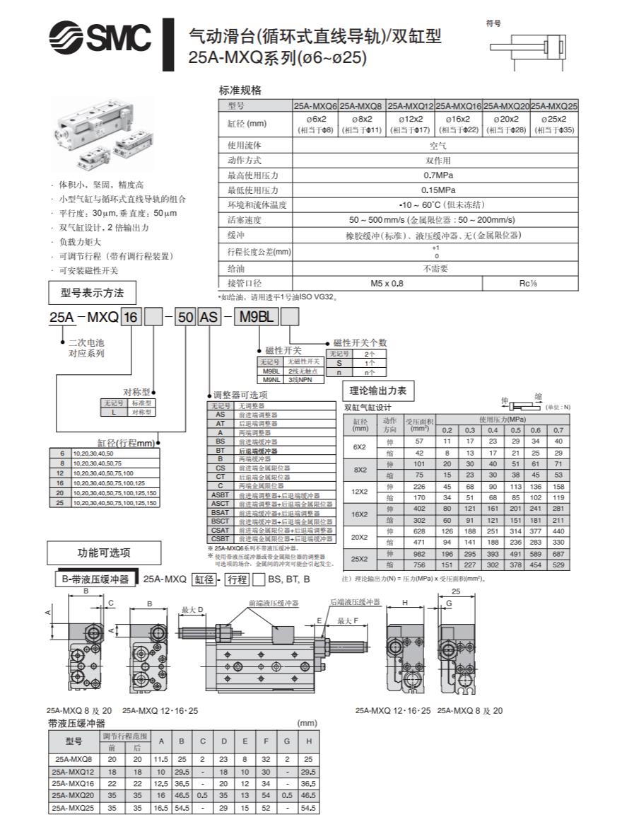 日本SMC滑台气缸25A-MXQ16-100B