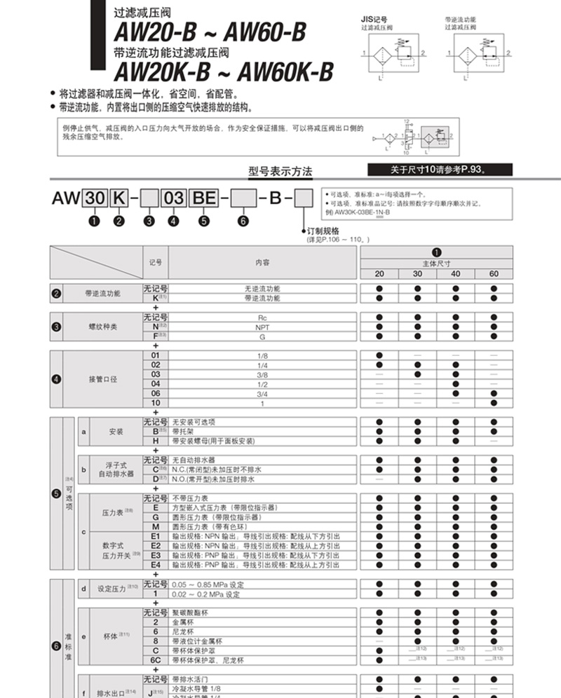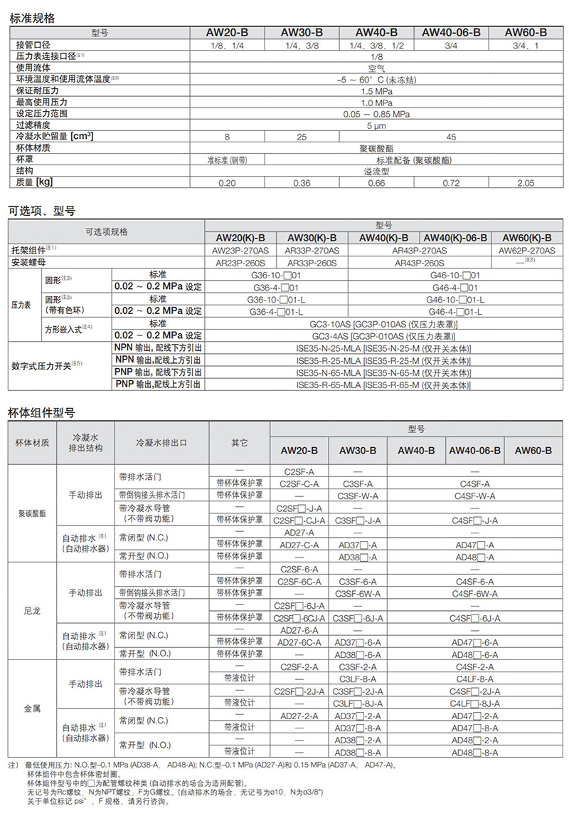 日本SMC空气洁净器 过滤减压阀 AW系列 AW30-03BDE-B
