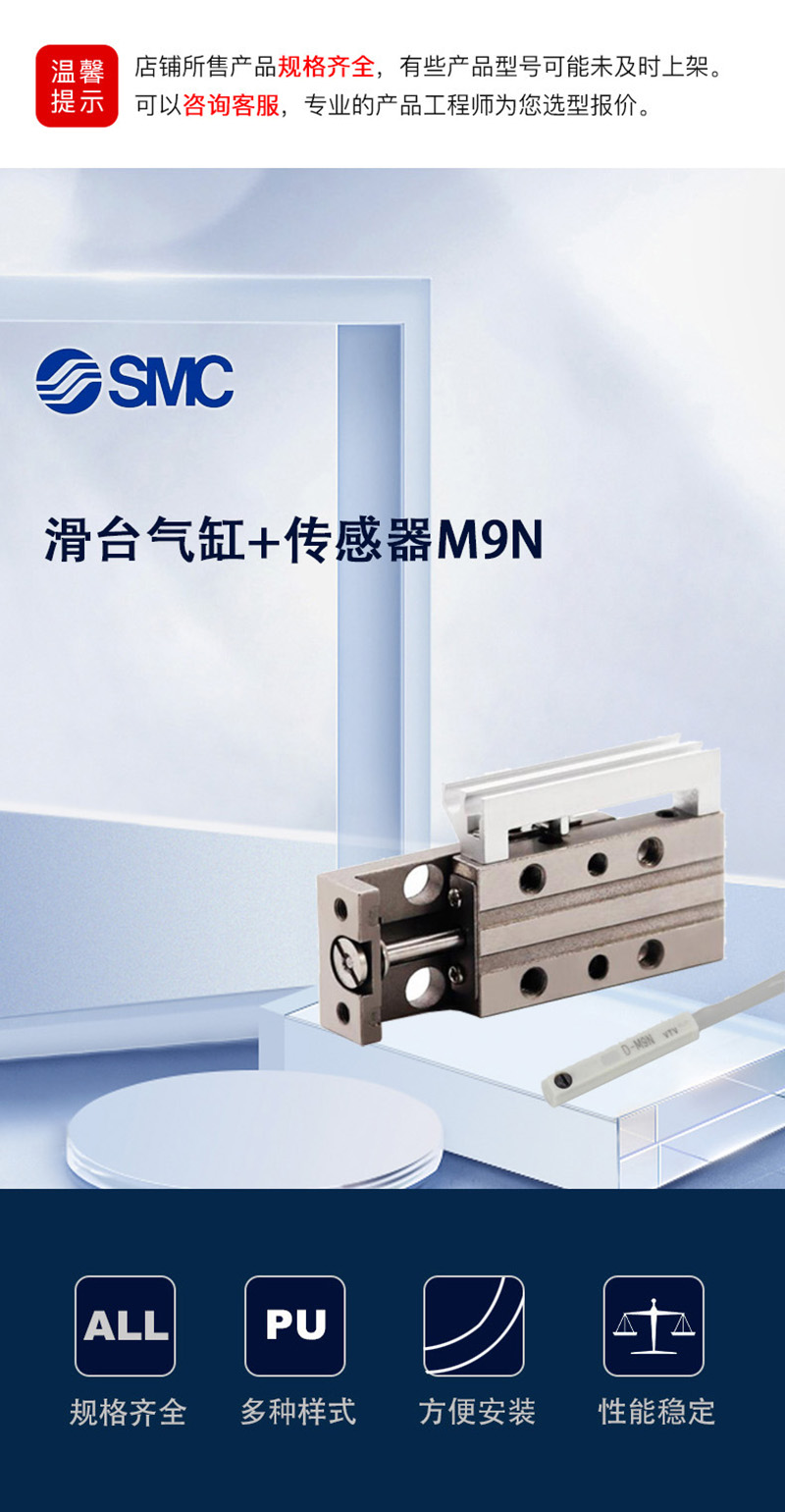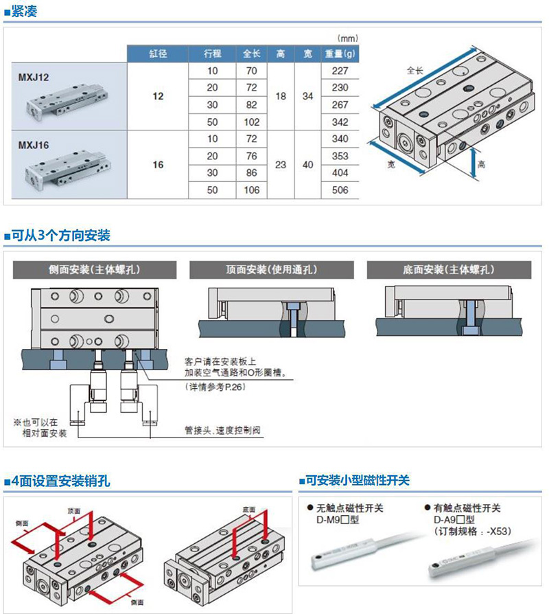 日本SMC滑台气缸加传感器M9n 加塞子MXJ6-5C-M9N