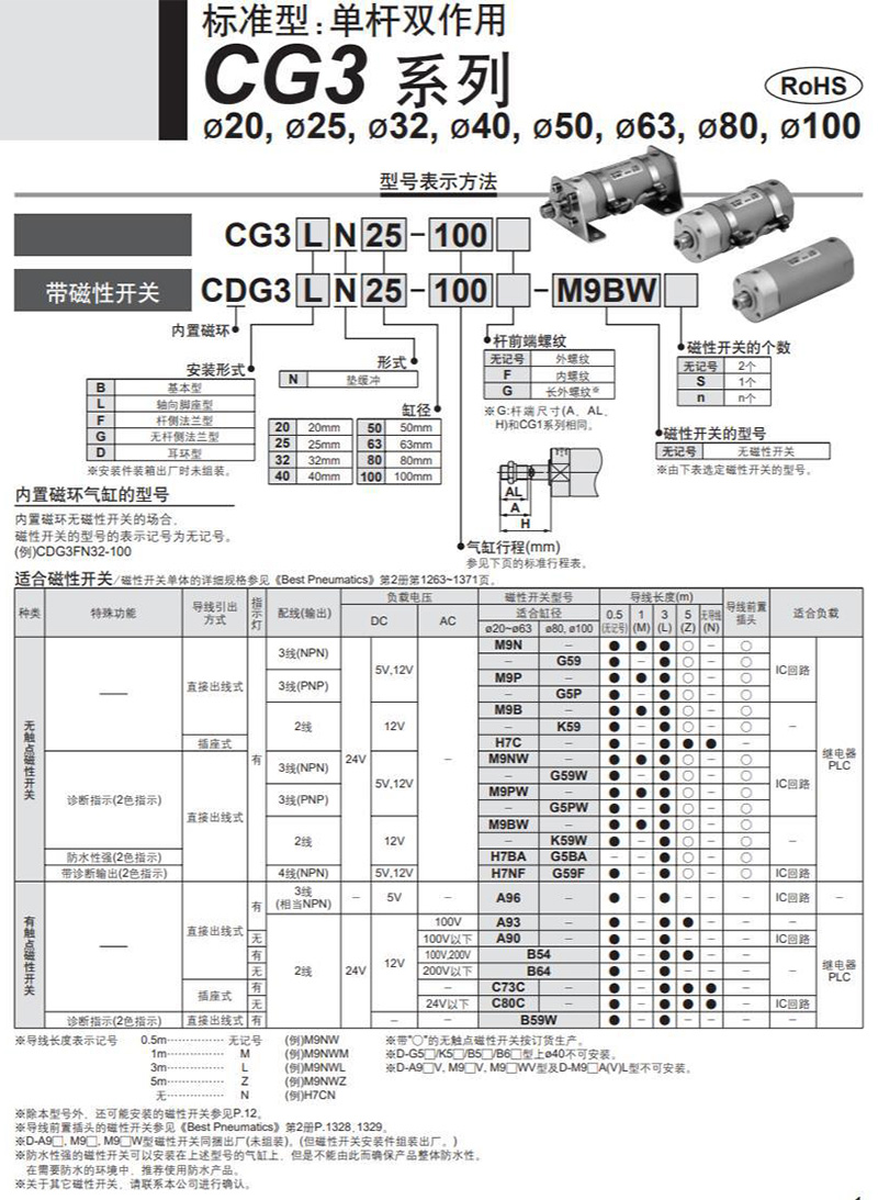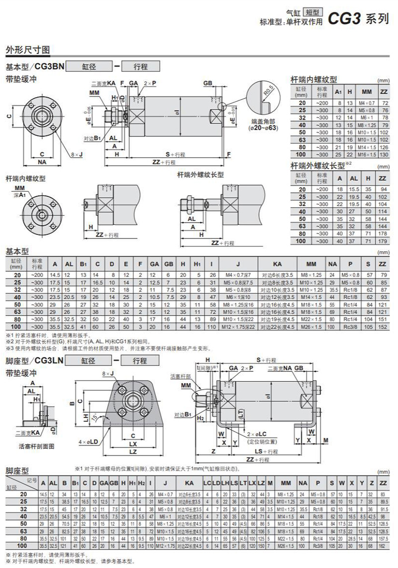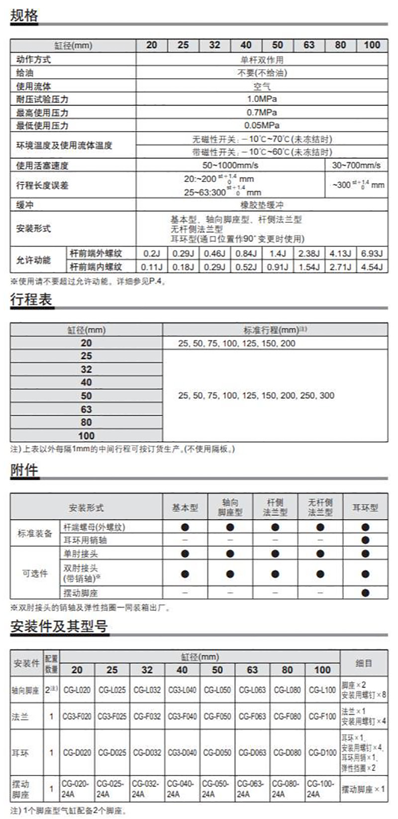 日本SMC 标准型气缸 短小型 CG3/CDG3系列