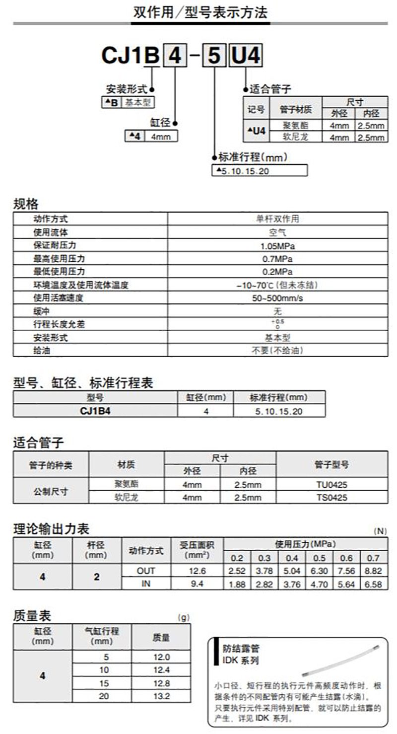 日本SMC标准型气缸 双作用型气缸 CJ1系列