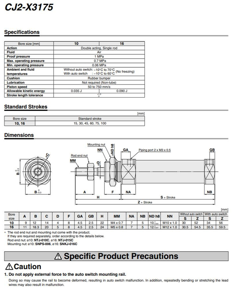 日本SMC紧凑型气缸 CJ2系列 CJ2-X3175