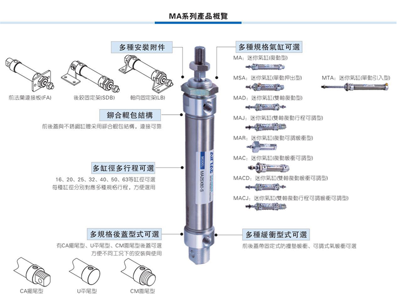 亚德客AirTAC气缸 不锈钢迷你气缸 MA系列