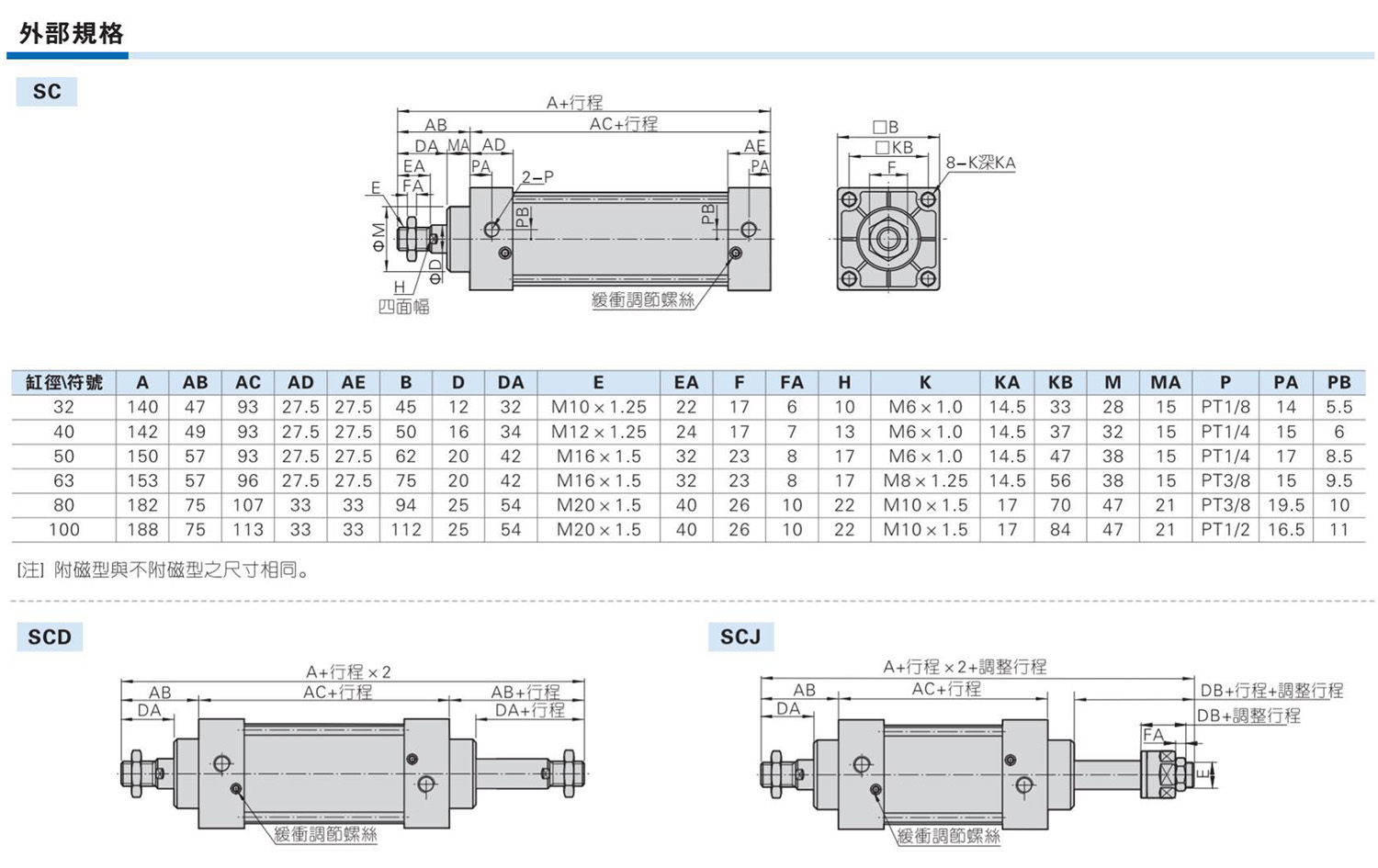 亚德客AirTAC气缸标准气缸SC系列