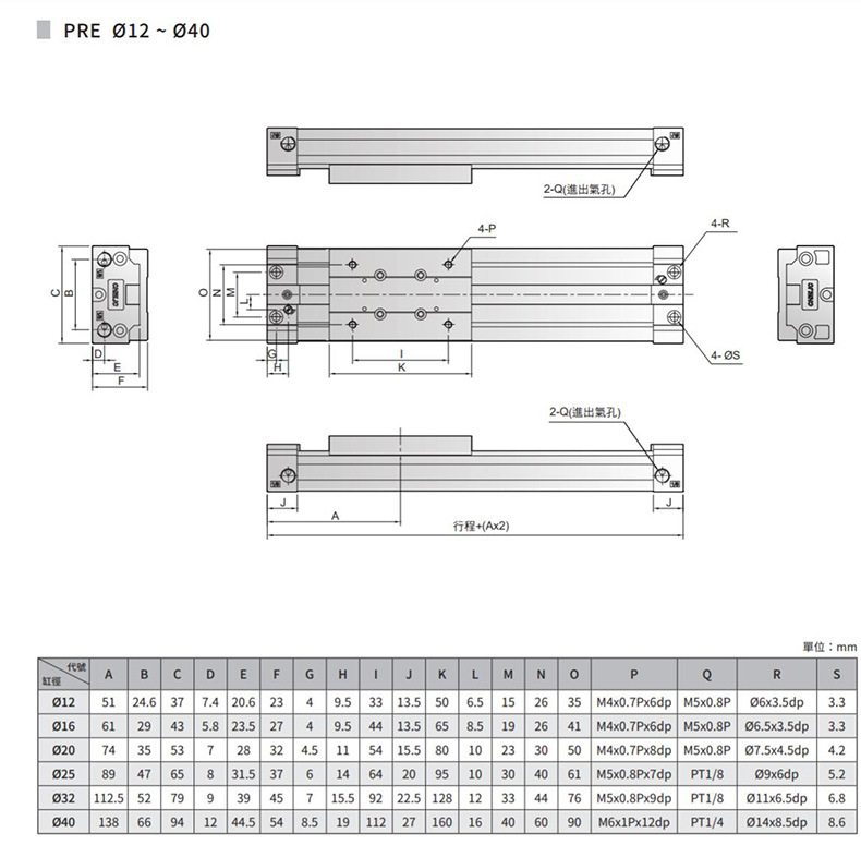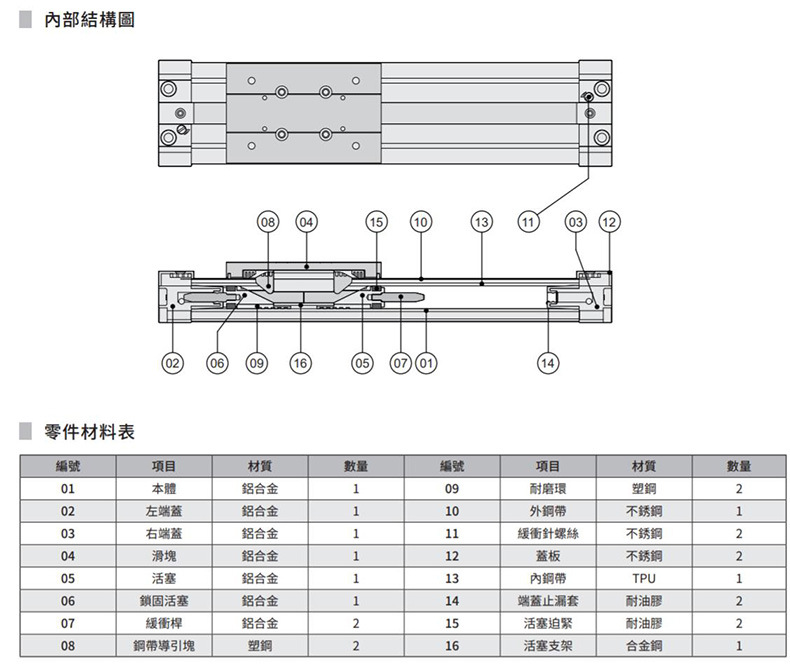 气立可CHELIC机械接合式椭圆形无杆气压缸PRE系列